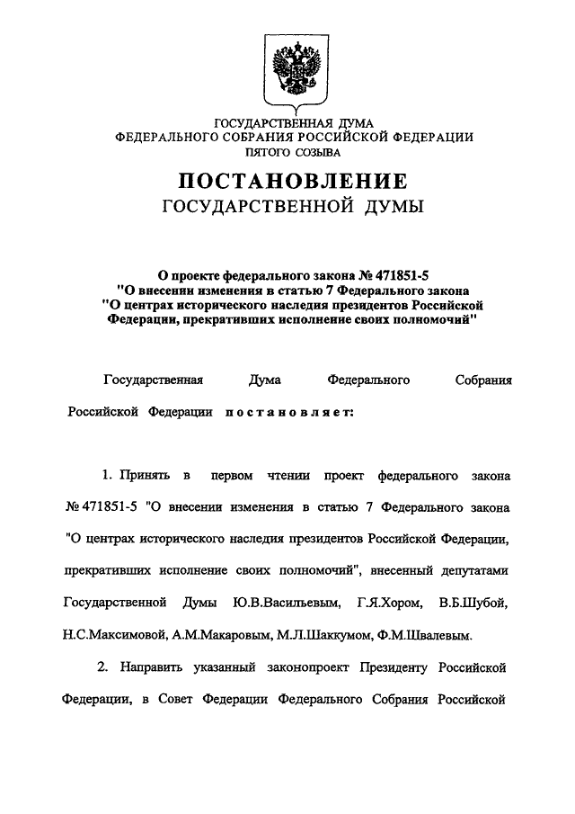 "О ПРОЕКТЕ ФЕДЕРАЛЬНОГО ЗАКОНА N 471851-5 "О ВНЕСЕНИИ ИЗМЕНЕНИЯ В