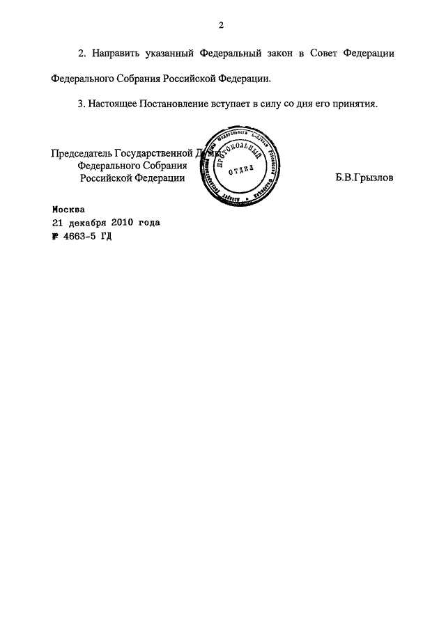 ПОСТАНОВЛЕНИЕ ГД ФС РФ от 21.12.2010 N 4663-5 ГД