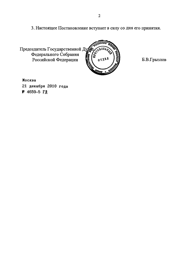 ПОСТАНОВЛЕНИЕ ГД ФС РФ от 21.12.2010 N 4659-5 ГД