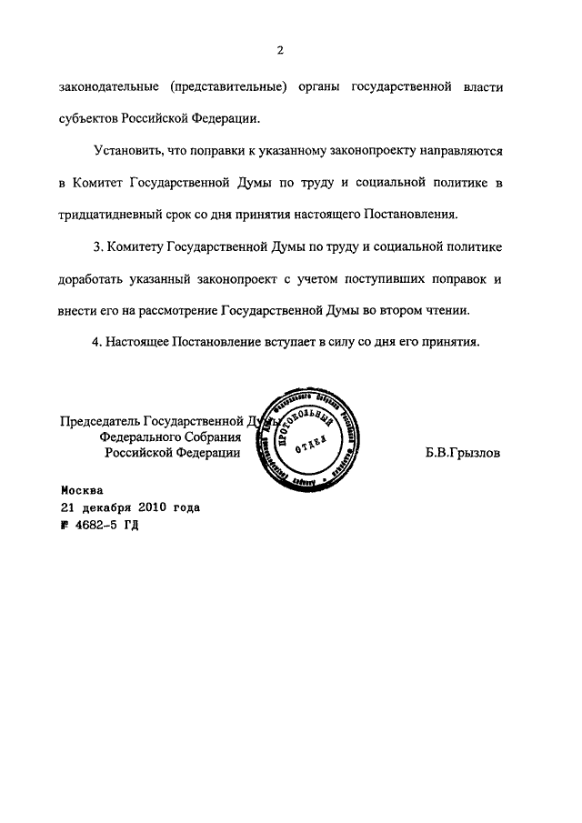 ПОСТАНОВЛЕНИЕ ГД ФС РФ от 21.12.2010 N 4682-5 ГД