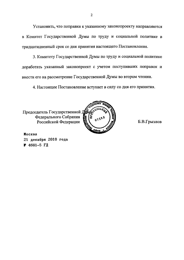 ПОСТАНОВЛЕНИЕ ГД ФС РФ от 21.12.2010 N 4681-5 ГД