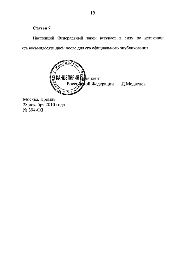 ФЕДЕРАЛЬНЫЙ ЗАКОН от 28.12.2010 N 394-ФЗ