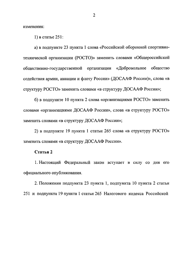 "О ВНЕСЕНИИ ИЗМЕНЕНИЙ В СТАТЬИ 251 И 265 ЧАСТИ ВТОРОЙ НАЛОГОВОГО КОДЕКСА РОССИЙСКОЙ ФЕДЕРАЦИИ"