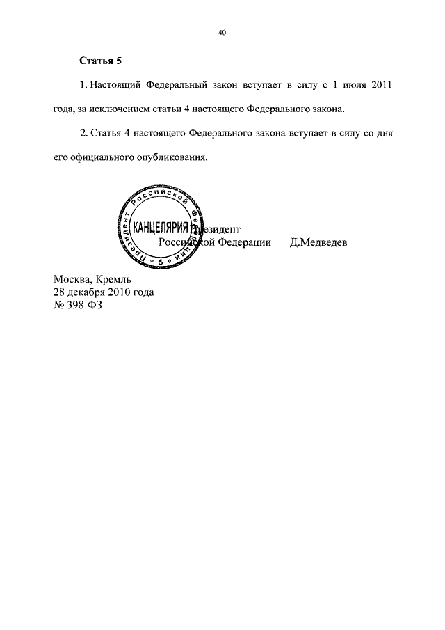 ФЕДЕРАЛЬНЫЙ ЗАКОН от 28.12.2010 N 398-ФЗ
