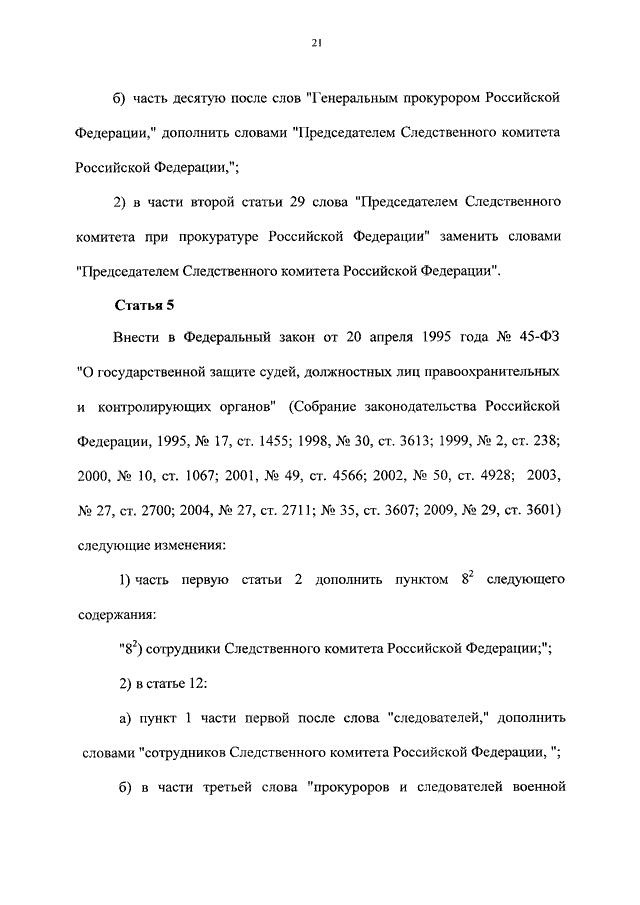 "О ВНЕСЕНИИ ИЗМЕНЕНИЙ В ОТДЕЛЬНЫЕ ЗАКОНОДАТЕЛЬНЫЕ АКТЫ РОССИЙСКОЙ ФЕДЕРАЦИИ В СВЯЗИ С СОВЕРШЕНСТВОВАНИЕМ ДЕЯТЕЛЬНОСТИ ОРГАНОВ ПРЕДВАРИТЕЛЬНОГО СЛЕДСТВИЯ"