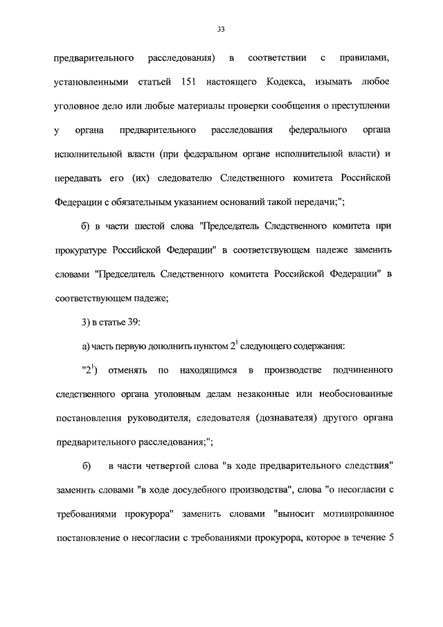 "О ВНЕСЕНИИ ИЗМЕНЕНИЙ В ОТДЕЛЬНЫЕ ЗАКОНОДАТЕЛЬНЫЕ АКТЫ РОССИЙСКОЙ ФЕДЕРАЦИИ В СВЯЗИ С СОВЕРШЕНСТВОВАНИЕМ ДЕЯТЕЛЬНОСТИ ОРГАНОВ ПРЕДВАРИТЕЛЬНОГО СЛЕДСТВИЯ"