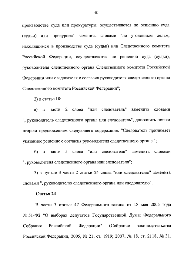 "О ВНЕСЕНИИ ИЗМЕНЕНИЙ В ОТДЕЛЬНЫЕ ЗАКОНОДАТЕЛЬНЫЕ АКТЫ РОССИЙСКОЙ ФЕДЕРАЦИИ В СВЯЗИ С СОВЕРШЕНСТВОВАНИЕМ ДЕЯТЕЛЬНОСТИ ОРГАНОВ ПРЕДВАРИТЕЛЬНОГО СЛЕДСТВИЯ"