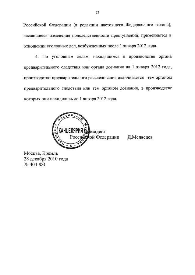 ФЕДЕРАЛЬНЫЙ ЗАКОН от 28.12.2010 N 404-ФЗ