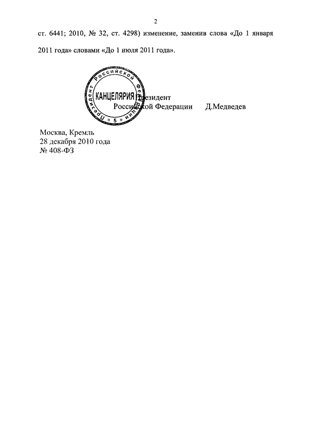 ФЕДЕРАЛЬНЫЙ ЗАКОН от 28.12.2010 N 408-ФЗ