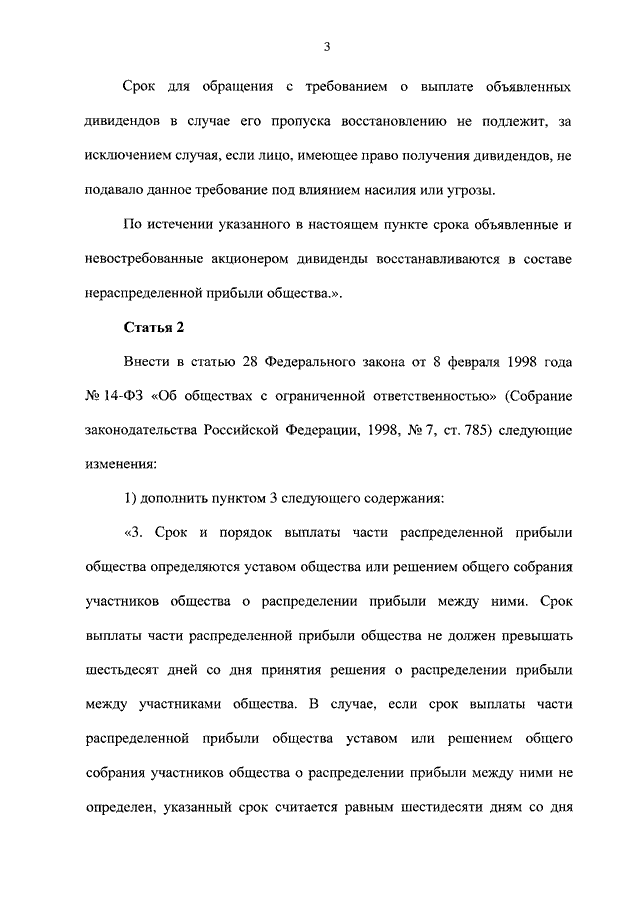 "О ВНЕСЕНИИ ИЗМЕНЕНИЙ В ОТДЕЛЬНЫЕ ЗАКОНОДАТЕЛЬНЫЕ АКТЫ РОССИЙСКОЙ ФЕДЕРАЦИИ В ЧАСТИ РЕГУЛИРОВАНИЯ ВЫПЛАТЫ ДИВИДЕНДОВ (РАСПРЕДЕЛЕНИЯ ПРИБЫЛИ)"