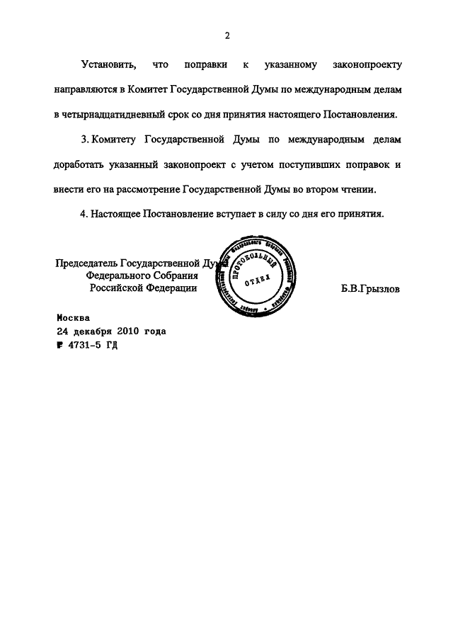ПОСТАНОВЛЕНИЕ ГД ФС РФ от 24.12.2010 N 4731-5 ГД