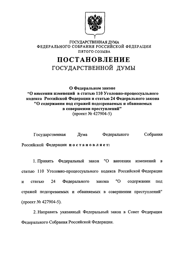 ОБВИНЯЕМЫХ В СОВЕРШЕНИИ ПРЕСТУПЛЕНИЙ" (ПРОЕКТ N 427904-5)"