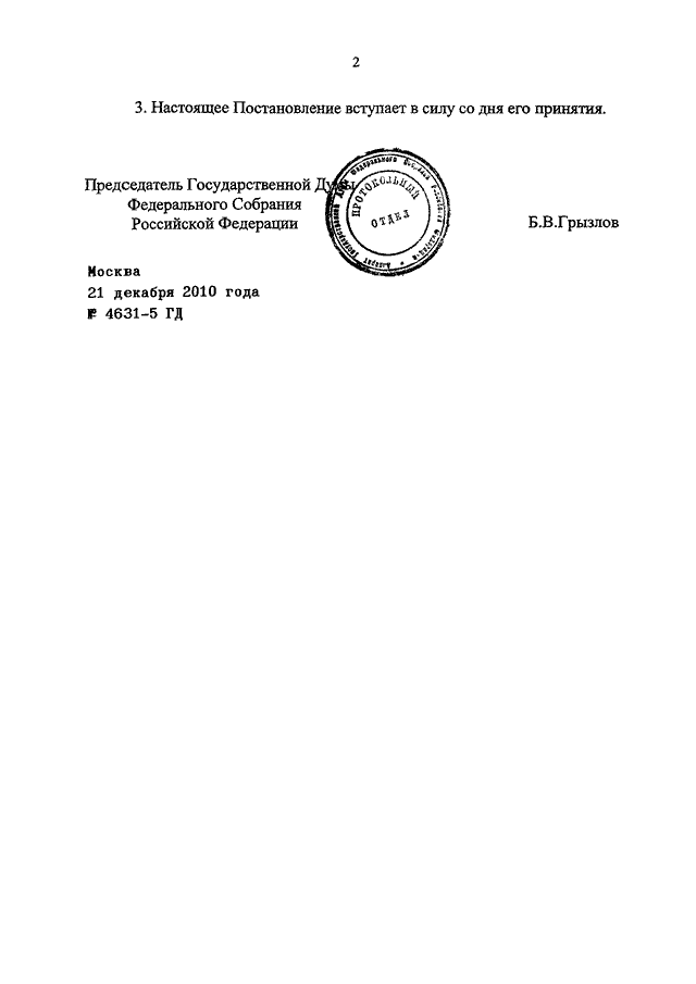 ПОСТАНОВЛЕНИЕ ГД ФС РФ от 21.12.2010 N 4631-5 ГД