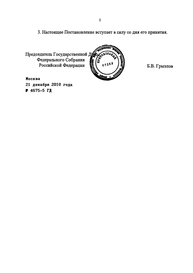 ПОСТАНОВЛЕНИЕ ГД ФС РФ от 21.12.2010 N 4675-5 ГД