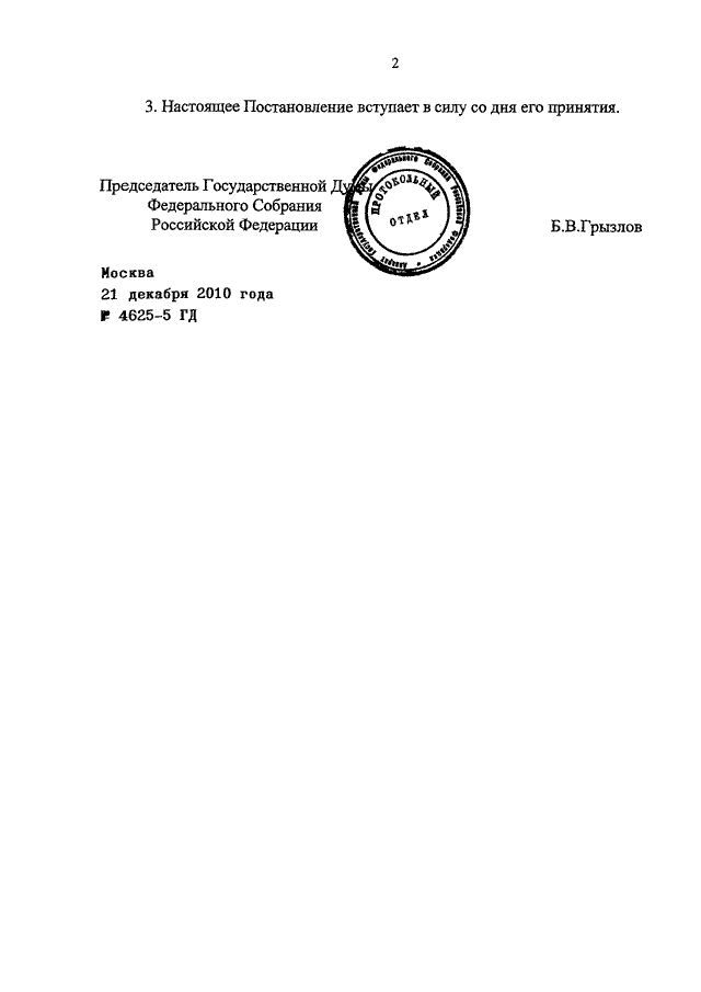 ПОСТАНОВЛЕНИЕ ГД ФС РФ от 21.12.2010 N 4625-5 ГД
