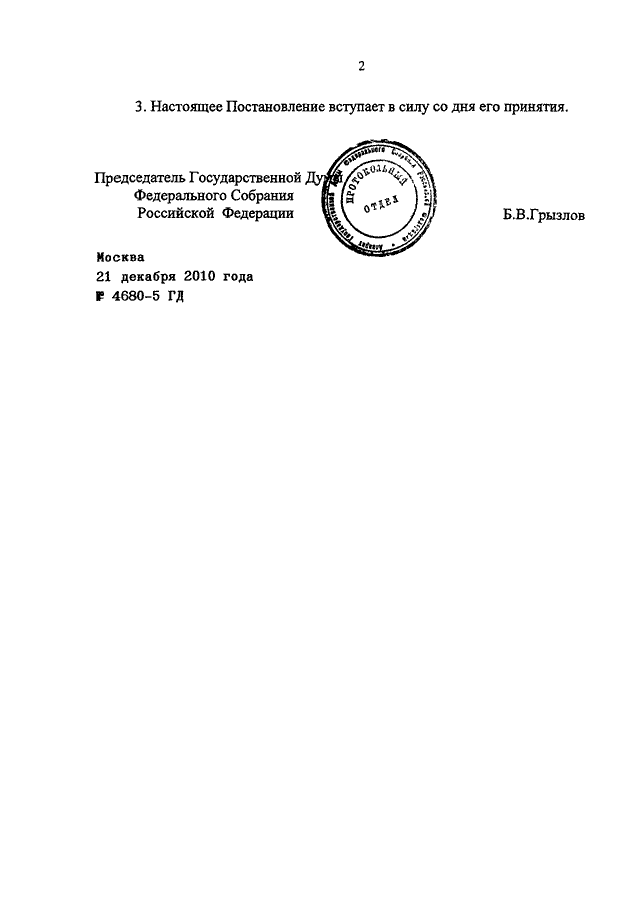 ПОСТАНОВЛЕНИЕ ГД ФС РФ от 21.12.2010 N 4680-5 ГД