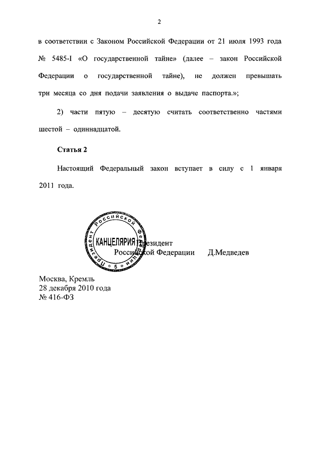 ФЕДЕРАЛЬНЫЙ ЗАКОН от 28.12.2010 N 416-ФЗ