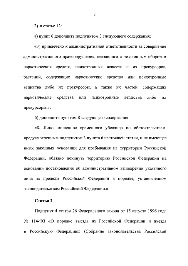"О ВНЕСЕНИИ ИЗМЕНЕНИЙ В ОТДЕЛЬНЫЕ ЗАКОНОДАТЕЛЬНЫЕ АКТЫ РОССИЙСКОЙ ФЕДЕРАЦИИ ПО ВОПРОСУ АДМИНИСТРАТИВНОГО ВЫДВОРЕНИЯ ЗА ПРЕДЕЛЫ РОССИЙСКОЙ ФЕДЕРАЦИИ ИНОСТРАННЫХ ГРАЖДАН И ЛИЦ БЕЗ ГРАЖДАНСТВА, СОВЕРШИВШИХ ПРАВОНАРУШЕНИЯ, СВЯЗАННЫЕ С НЕЗАКОННЫМ ОБОРОТОМ НАРКОТИЧЕСКИХ СРЕДСТВ, ПСИХОТРОПНЫХ ВЕЩЕСТВ И ИХ ПРЕКУРСОРОВ"