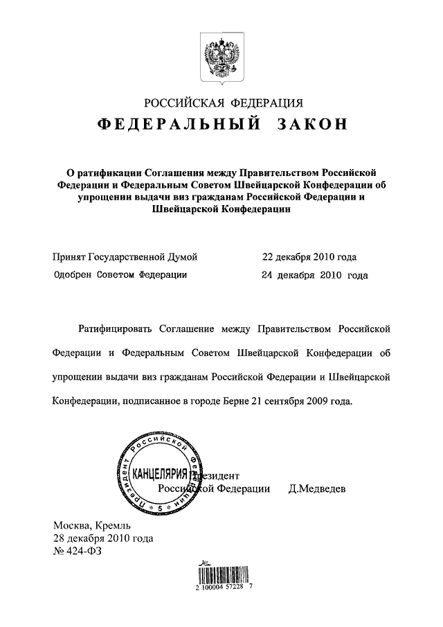 ФЕДЕРАЛЬНЫЙ ЗАКОН от 28.12.2010 N 424-ФЗ
