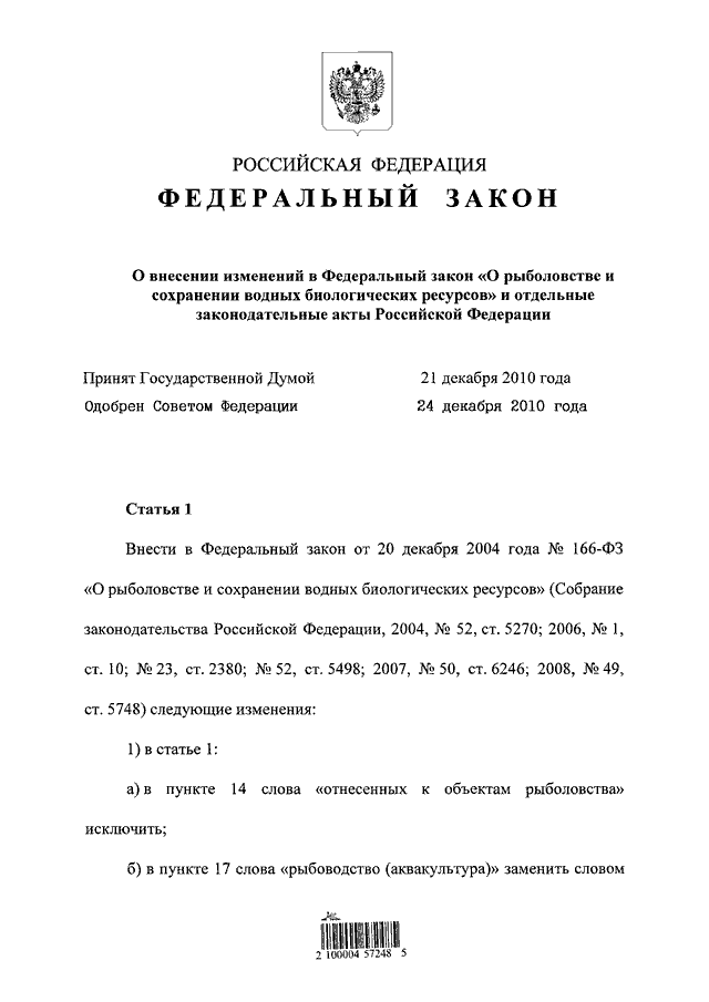 "О ВНЕСЕНИИ ИЗМЕНЕНИЙ В ФЕДЕРАЛЬНЫЙ ЗАКОН "О РЫБОЛОВСТВЕ И СОХРАНЕНИИ ВОДНЫХ БИОЛОГИЧЕСКИХ РЕСУРСОВ" И ОТДЕЛЬНЫЕ ЗАКОНОДАТЕЛЬНЫЕ АКТЫ РОССИЙСКОЙ ФЕДЕРАЦИИ"
