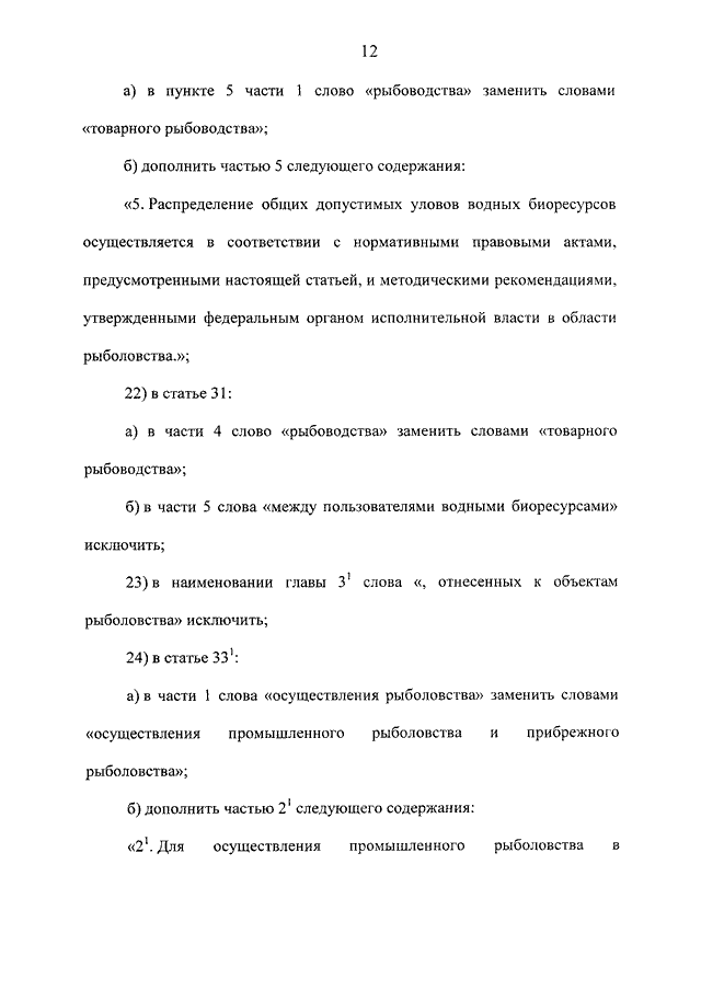 "О ВНЕСЕНИИ ИЗМЕНЕНИЙ В ФЕДЕРАЛЬНЫЙ ЗАКОН "О РЫБОЛОВСТВЕ И СОХРАНЕНИИ ВОДНЫХ БИОЛОГИЧЕСКИХ РЕСУРСОВ" И ОТДЕЛЬНЫЕ ЗАКОНОДАТЕЛЬНЫЕ АКТЫ РОССИЙСКОЙ ФЕДЕРАЦИИ"