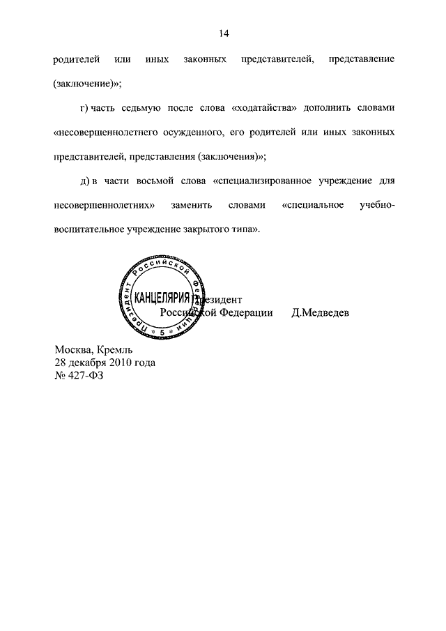 ФЕДЕРАЛЬНЫЙ ЗАКОН от 28.12.2010 N 427-ФЗ