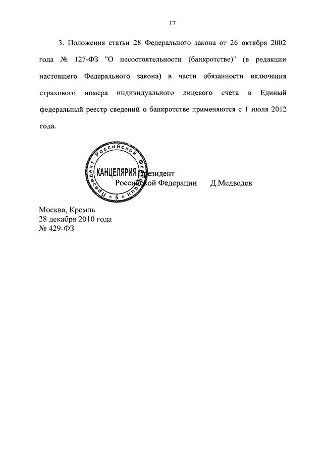 ФЕДЕРАЛЬНЫЙ ЗАКОН от 28.12.2010 N 429-ФЗ
