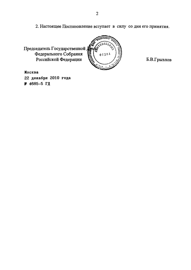 ПОСТАНОВЛЕНИЕ ГД ФС РФ от 22.12.2010 N 4685-5 ГД