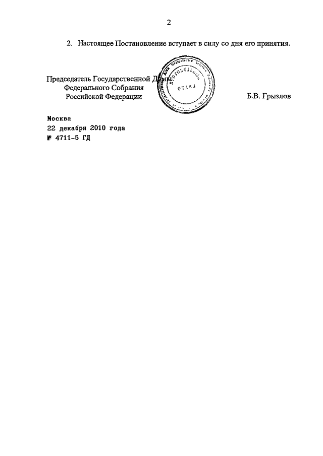 ПОСТАНОВЛЕНИЕ ГД ФС РФ от 22.12.2010 N 4711-5 ГД