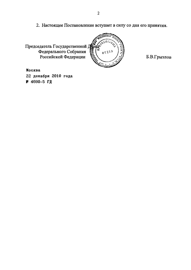 ПОСТАНОВЛЕНИЕ ГД ФС РФ от 22.12.2010 N 4690-5 ГД