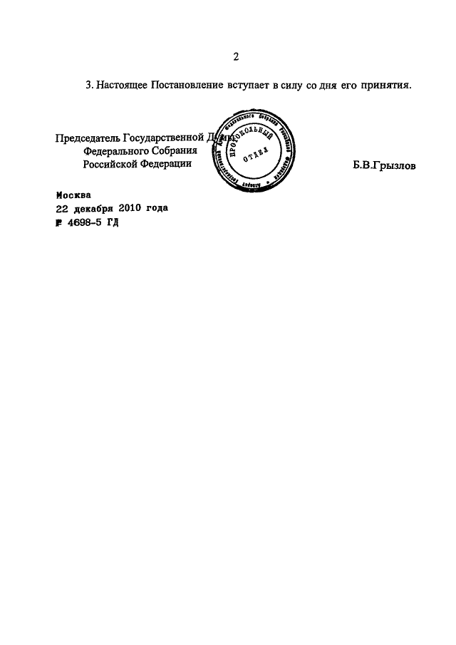 ПОСТАНОВЛЕНИЕ ГД ФС РФ от 22.12.2010 N 4698-5 ГД
