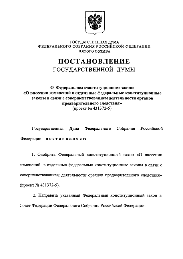 "О ФЕДЕРАЛЬНОМ КОНСТИТУЦИОННОМ ЗАКОНЕ "О ВНЕСЕНИИ ИЗМЕНЕНИЙ В