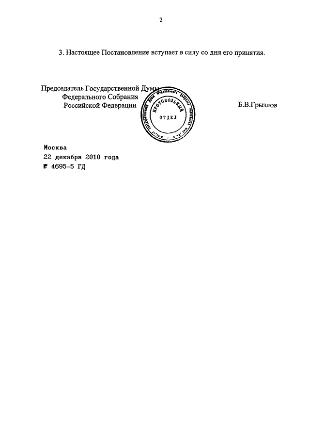 ПОСТАНОВЛЕНИЕ ГД ФС РФ от 22.12.2010 N 4695-5 ГД