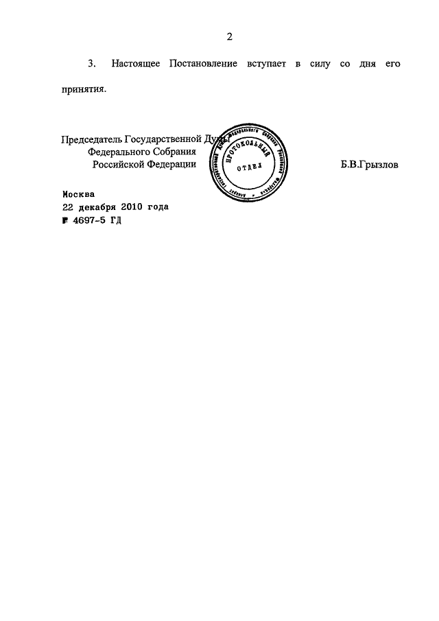 ПОСТАНОВЛЕНИЕ ГД ФС РФ от 22.12.2010 N 4697-5 ГД