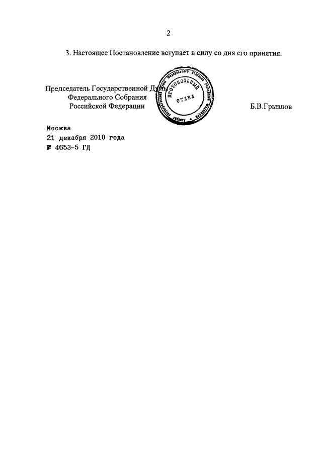 ПОСТАНОВЛЕНИЕ ГД ФС РФ от 21.12.2010 N 4653-5 ГД
