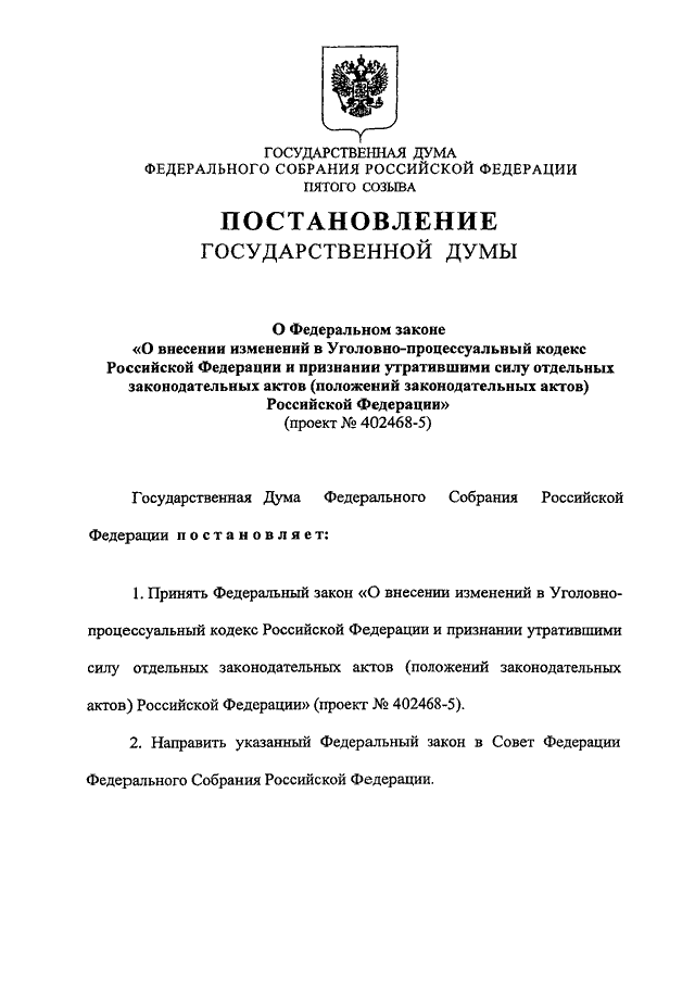 АКТОВ) РОССИЙСКОЙ ФЕДЕРАЦИИ" (ПРОЕКТ N 402468-5)"