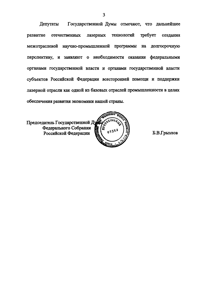 "О ЗАЯВЛЕНИИ ГОСУДАРСТВЕННОЙ ДУМЫ ФЕДЕРАЛЬНОГО СОБРАНИЯ РОССИЙСКОЙ ФЕДЕРАЦИИ "В СВЯЗИ С 50-ЛЕТИЕМ СОЗДАНИЯ ЛАЗЕРА"