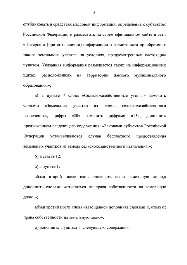 "О ВНЕСЕНИИ ИЗМЕНЕНИЙ В ОТДЕЛЬНЫЕ ЗАКОНОДАТЕЛЬНЫЕ АКТЫ РОССИЙСКОЙ ФЕДЕРАЦИИ В ЧАСТИ СОВЕРШЕНСТВОВАНИЯ ОБОРОТА ЗЕМЕЛЬ СЕЛЬСКОХОЗЯЙСТВЕННОГО НАЗНАЧЕНИЯ"
