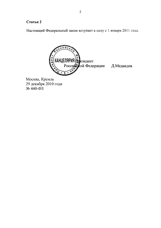 ФЕДЕРАЛЬНЫЙ ЗАКОН от 29.12.2010 N 440-ФЗ