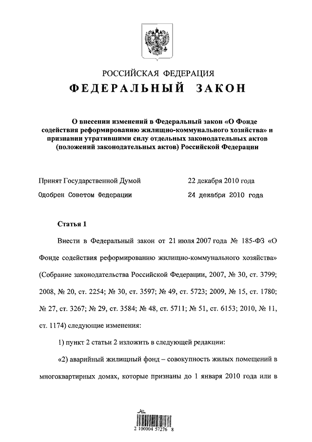 (принят ГД ФС РФ 22.12.2010)