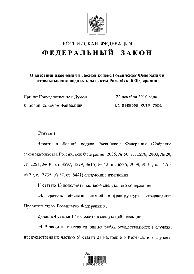 "О ВНЕСЕНИИ ИЗМЕНЕНИЙ В ЛЕСНОЙ КОДЕКС РОССИЙСКОЙ ФЕДЕРАЦИИ И ОТДЕЛЬНЫЕ ЗАКОНОДАТЕЛЬНЫЕ АКТЫ РОССИЙСКОЙ ФЕДЕРАЦИИ"