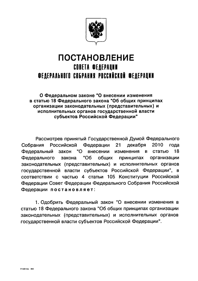 ПОСТАНОВЛЕНИЕ СФ ФС РФ от 24.12.2010 N 635-СФ