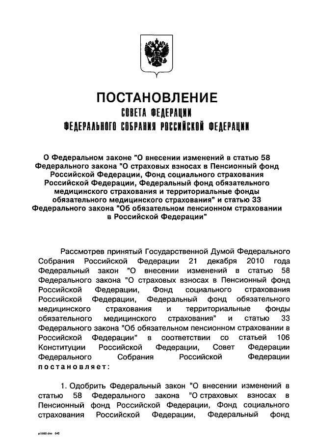 СТАТЬЮ 33 ФЕДЕРАЛЬНОГО ЗАКОНА "ОБ ОБЯЗАТЕЛЬНОМ ПЕНСИОННОМ