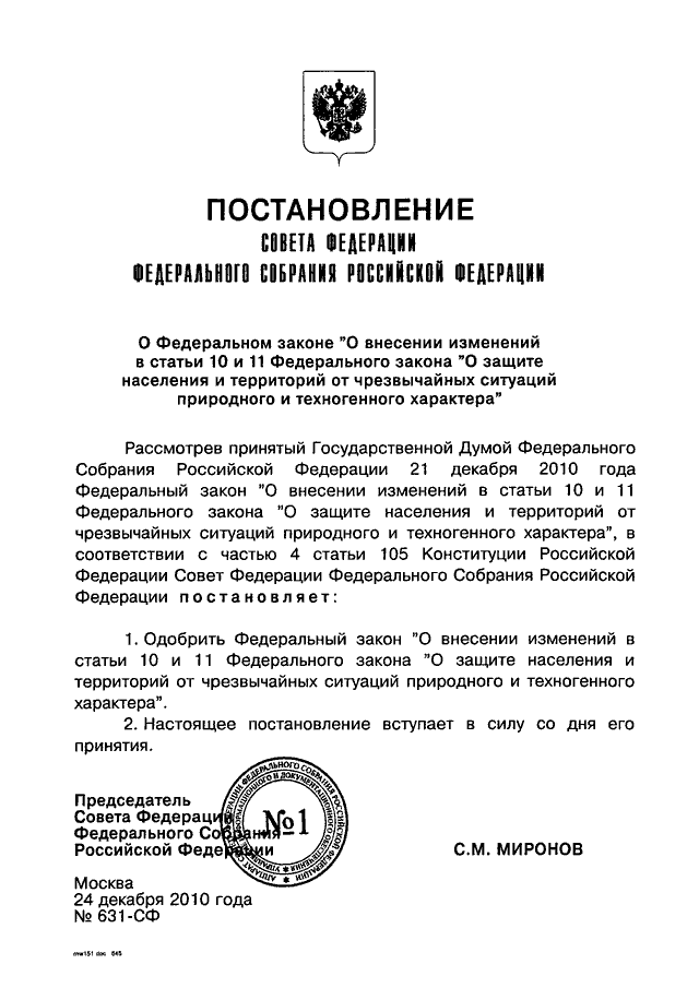 ПОСТАНОВЛЕНИЕ СФ ФС РФ от 24.12.2010 N 631-СФ