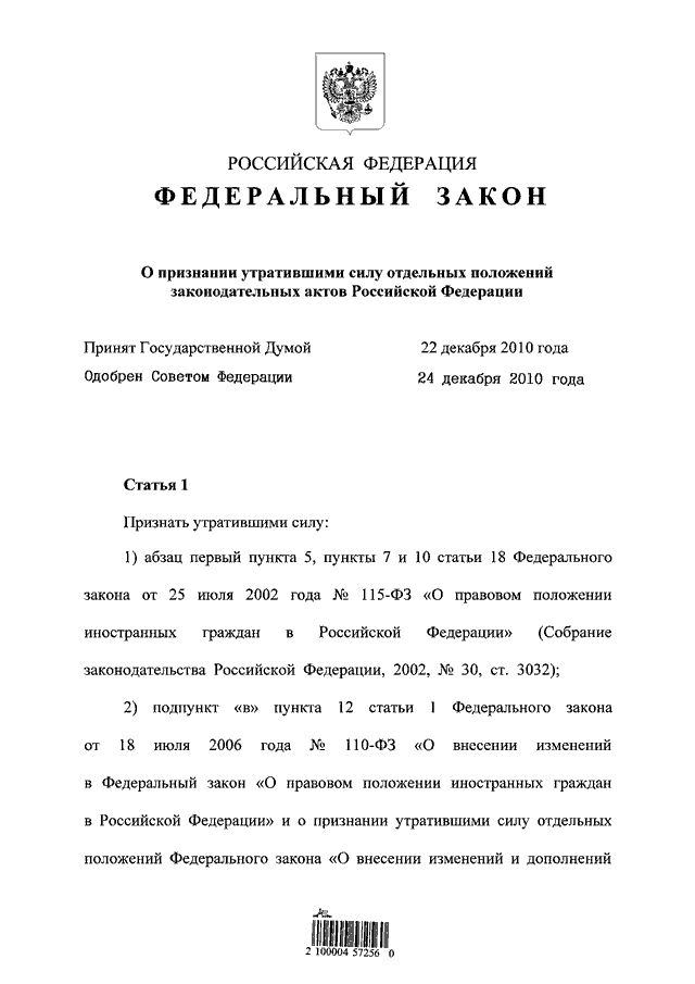 ФЕДЕРАЛЬНЫЙ ЗАКОН от 29.12.2010 N 438-ФЗ