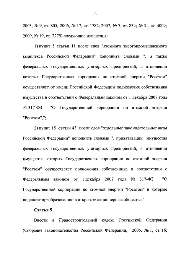 "О ВНЕСЕНИИ ИЗМЕНЕНИЙ В ФЕДЕРАЛЬНЫЙ ЗАКОН "О ГОСУДАРСТВЕННОЙ КОРПОРАЦИИ ПО АТОМНОЙ ЭНЕРГИИ "РОСАТОМ" И ОТДЕЛЬНЫЕ ЗАКОНОДАТЕЛЬНЫЕ АКТЫ РОССИЙСКОЙ ФЕДЕРАЦИИ"