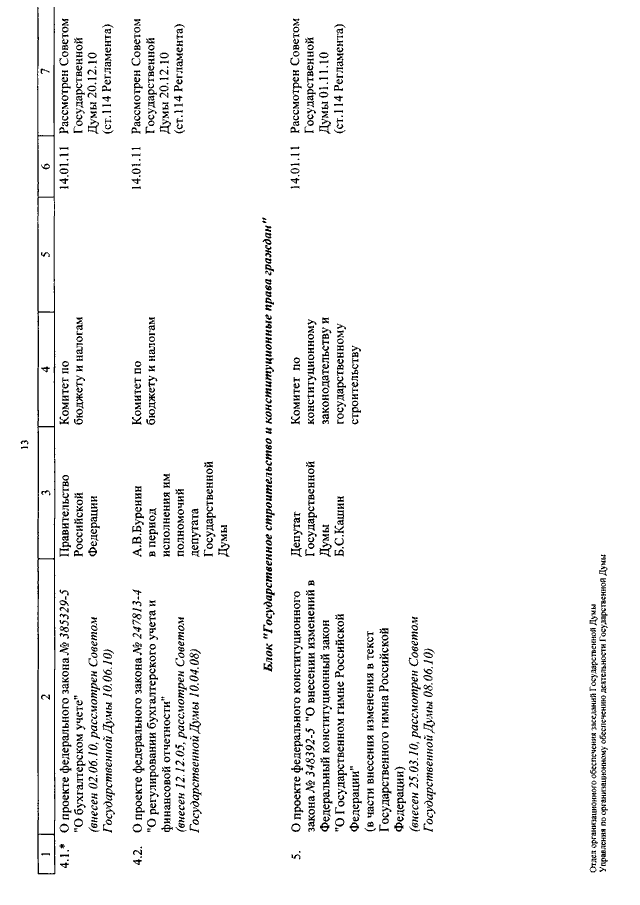 "О КАЛЕНДАРЕ РАССМОТРЕНИЯ ВОПРОСОВ ГОСУДАРСТВЕННОЙ ДУМОЙ С 11 ПО 28 ЯНВАРЯ 2011 ГОДА"