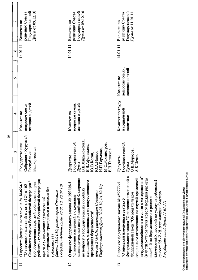 "О КАЛЕНДАРЕ РАССМОТРЕНИЯ ВОПРОСОВ ГОСУДАРСТВЕННОЙ ДУМОЙ С 11 ПО 28 ЯНВАРЯ 2011 ГОДА"