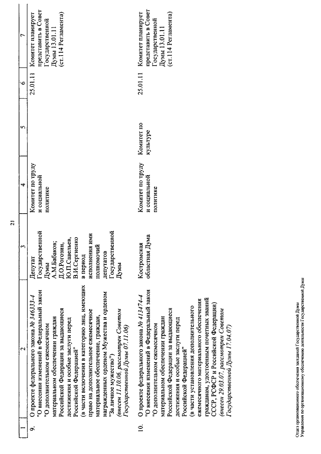 "О КАЛЕНДАРЕ РАССМОТРЕНИЯ ВОПРОСОВ ГОСУДАРСТВЕННОЙ ДУМОЙ С 11 ПО 28 ЯНВАРЯ 2011 ГОДА"