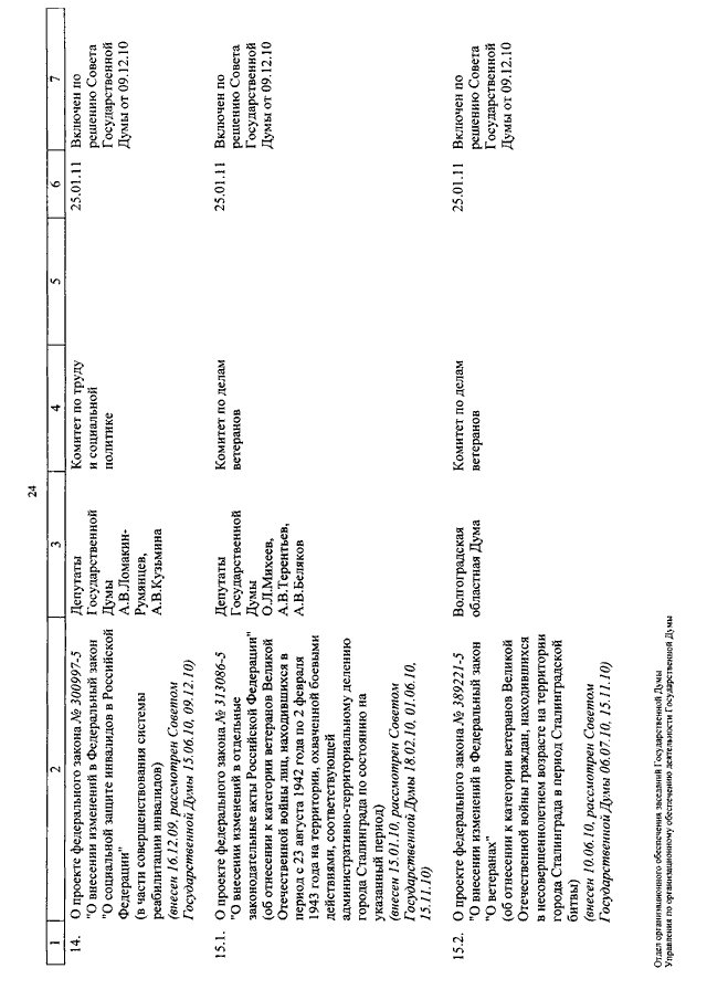 "О КАЛЕНДАРЕ РАССМОТРЕНИЯ ВОПРОСОВ ГОСУДАРСТВЕННОЙ ДУМОЙ С 11 ПО 28 ЯНВАРЯ 2011 ГОДА"